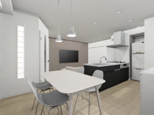 ↑左がキッチン配置に少々苦戦をしながらプランを考え…作成したパースです。